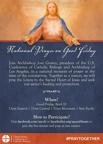 While people of faith are unable to come together on a wide scale, we do have the opportunity to join together virtually in prayer. Today (April 10), on this Good Friday, Archbishop Gomez will lead the Litany of the Sacred Heart of Jesus for an end to the COVID-19 pandemic. All are welcome to join; the livestream will be up at 12:00 pm EST.